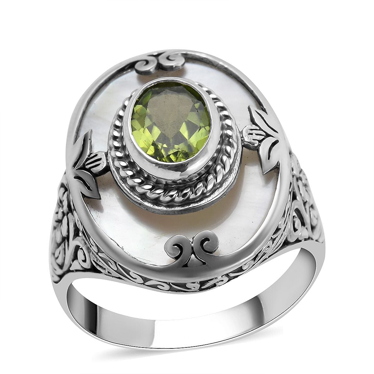 BALI LEGACY AMERICAN Natural Arizona Peridot and Mother Of Pearl Ring in Sterling Silver 8.5 Grams 3.25 ctw