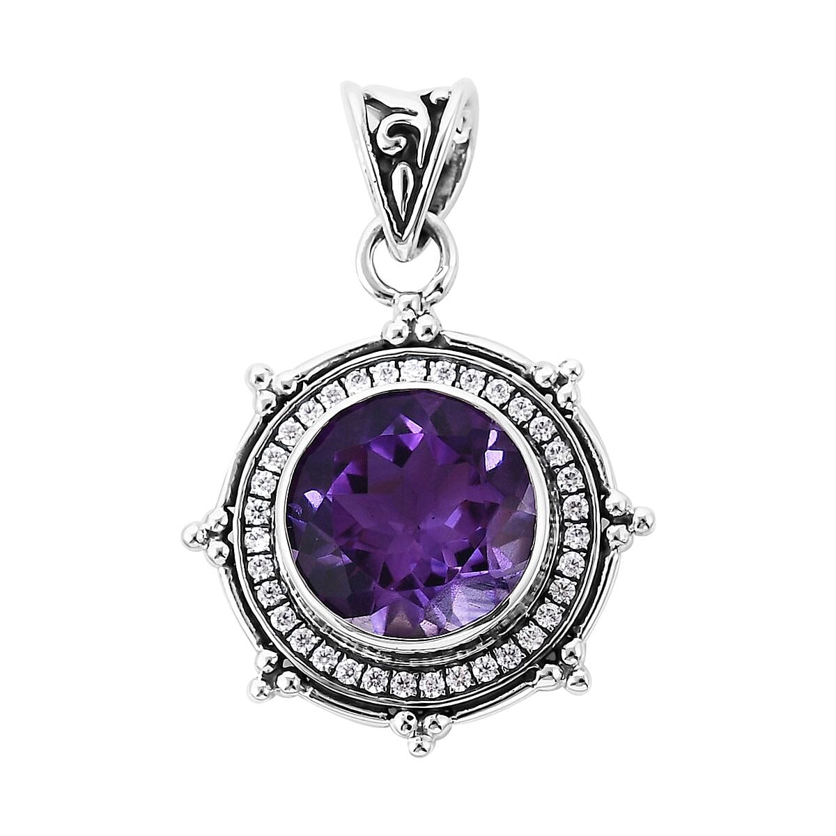 Bali Legacy Amethyst and Simulated Diamond Sun Star Pendant without Chain in Sterling Silver 1.20 ctw