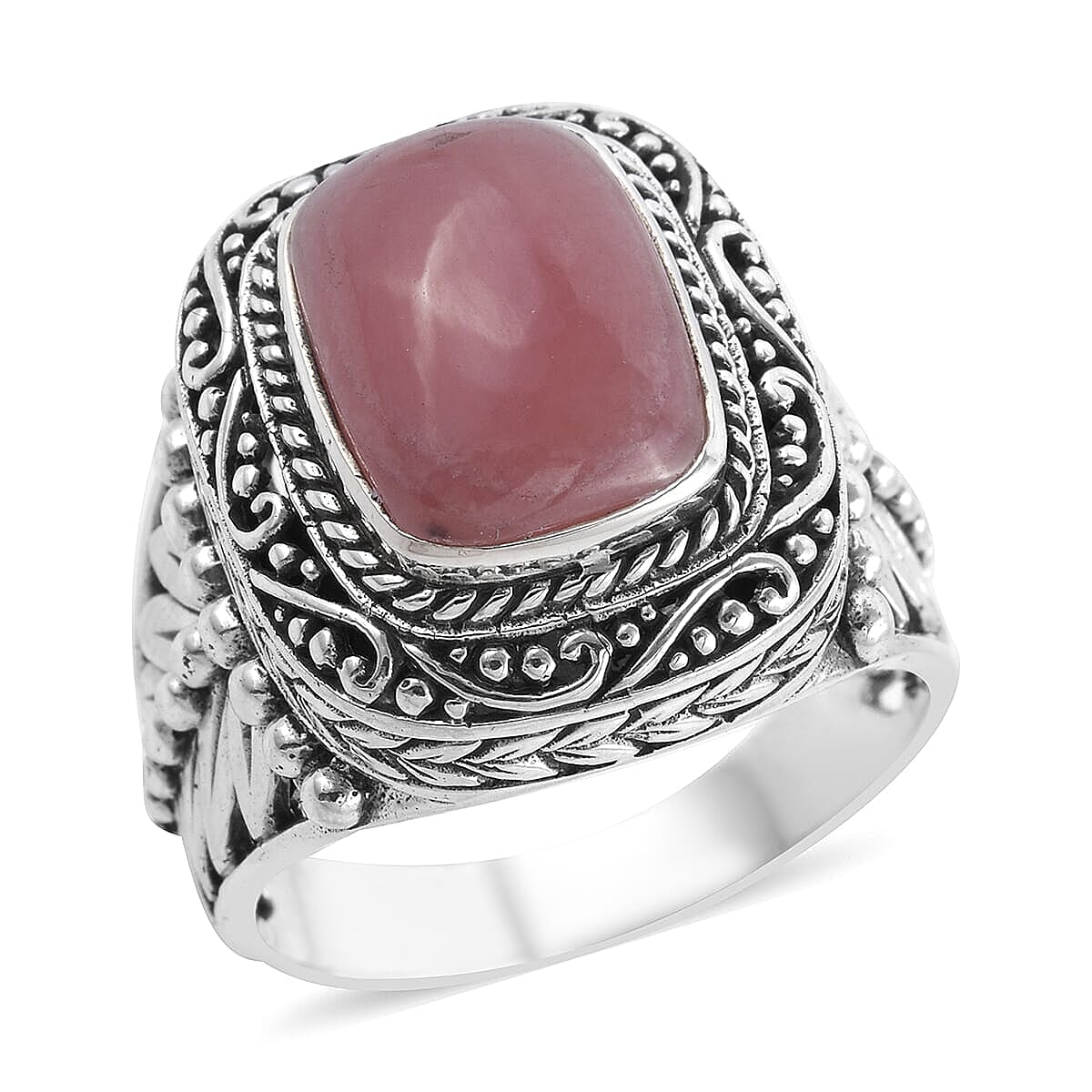 BALI LEGACY Argentinian Rhodochrosite Fillegree Work Ring in Sterling Silver (9.35 g) 7.10 ctw