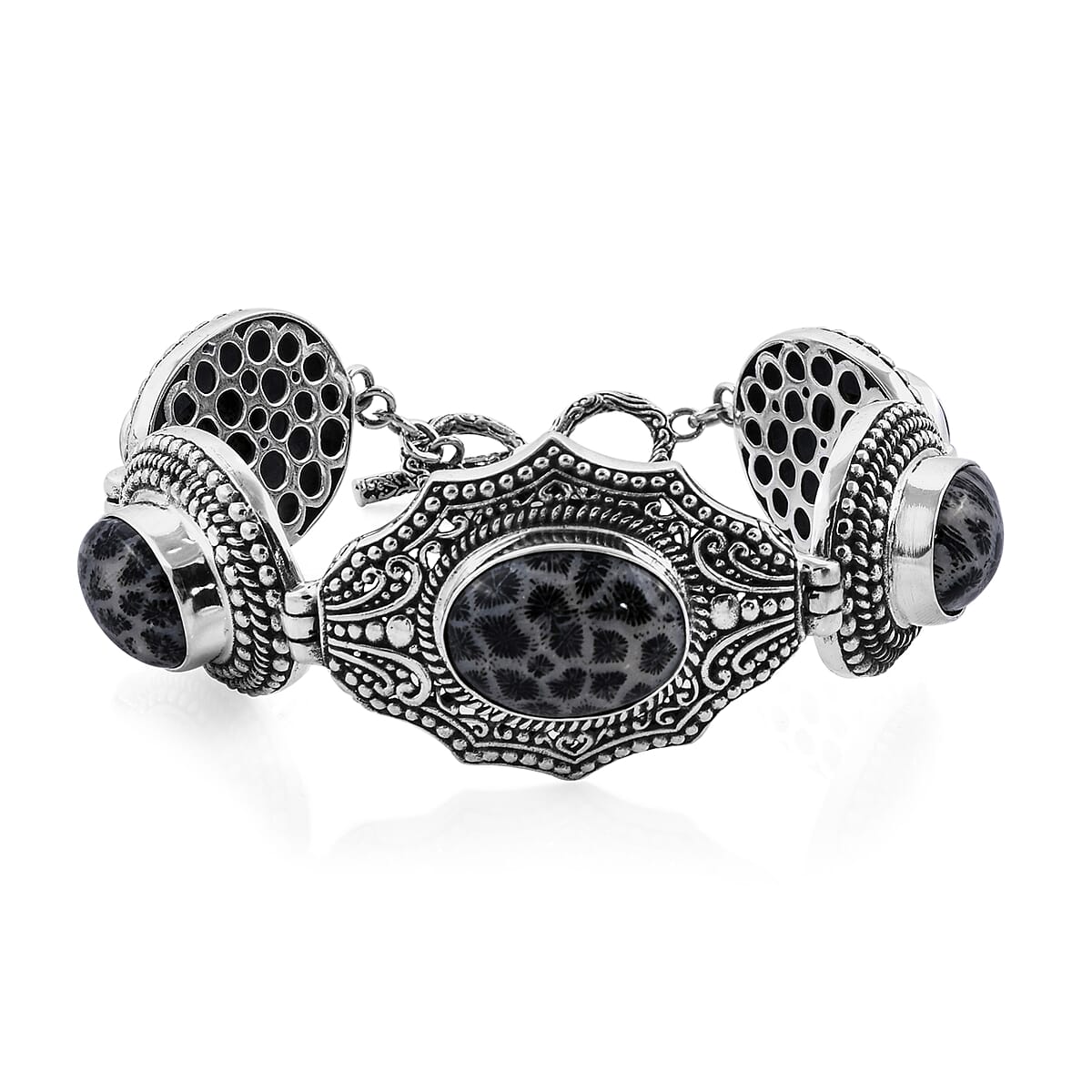 Bali Legacy Black Fossilized Coral Bracelet (7-7.5In) in Sterling Silver 39 Grams