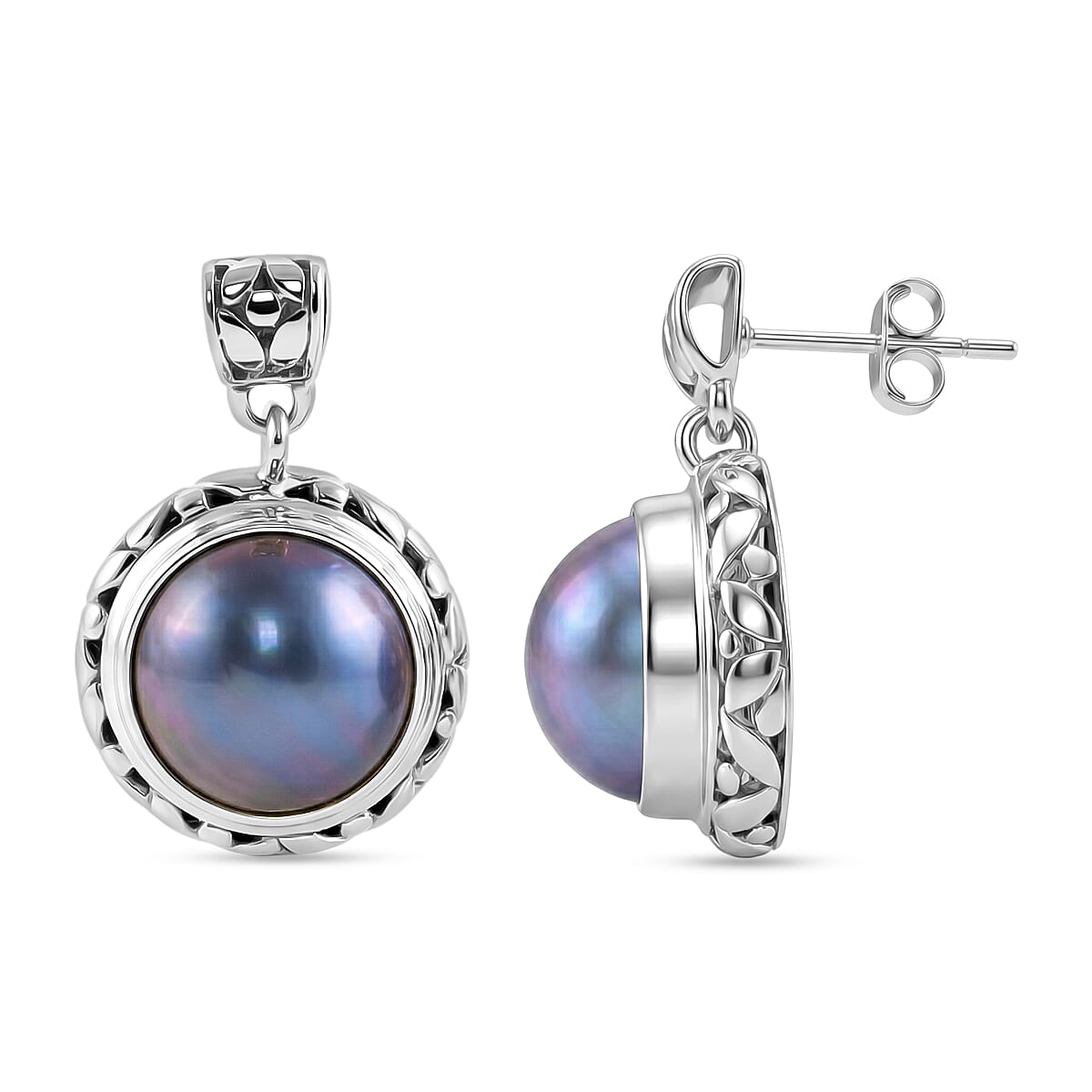 Bali Legacy Blue Mabe Pearl Earrings in Sterling Silver