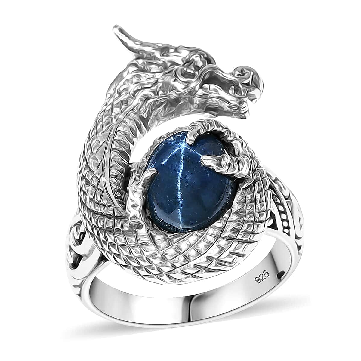 Bali Legacy Blue Star Sapphire (DF) 4.50 ctw Dragon Ring in Sterling Silver (Size 8.0)