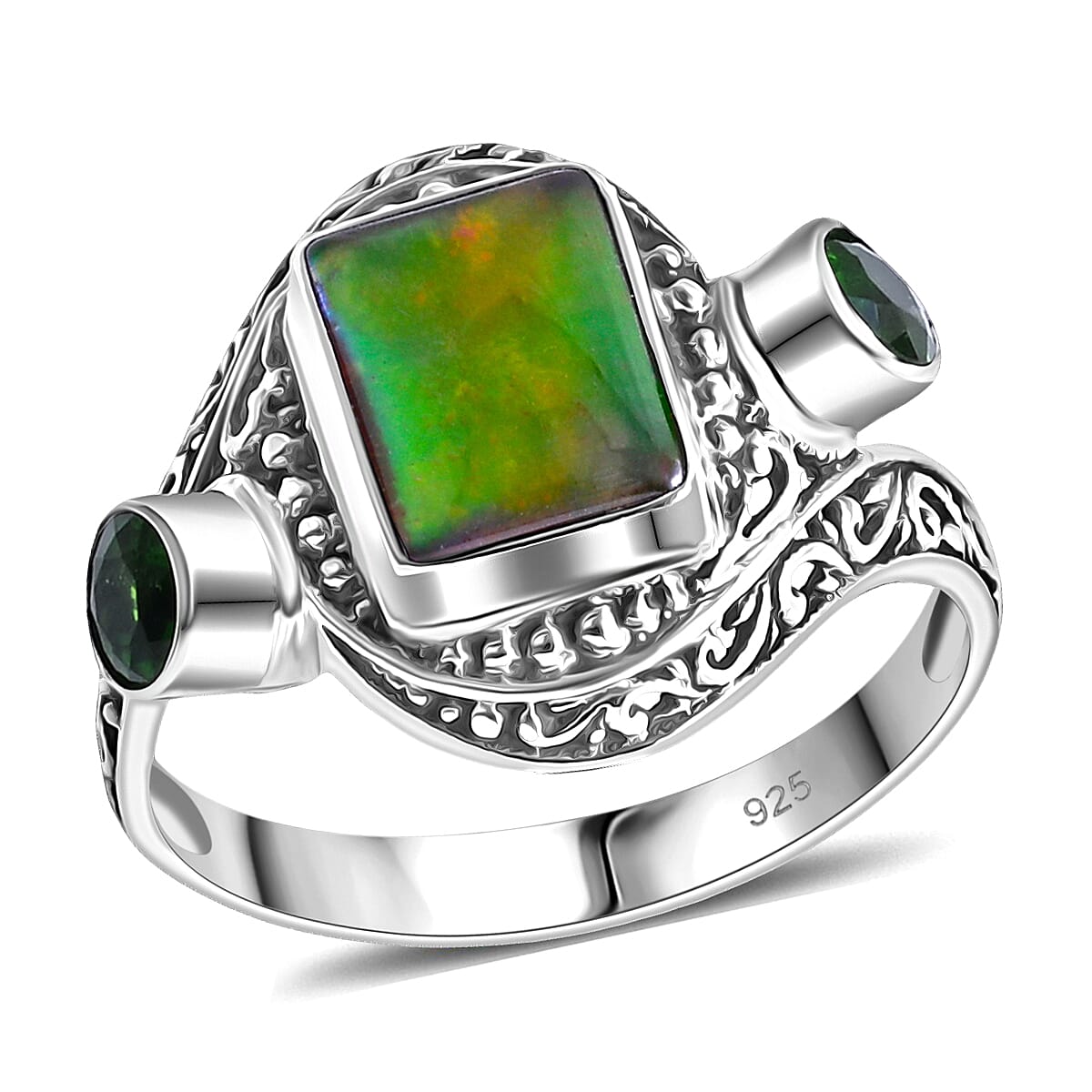 Bali Legacy Canadian Ammolite and Chrome Diopside 0.70 ctw Ring in Sterling Silver (Size 5.0)