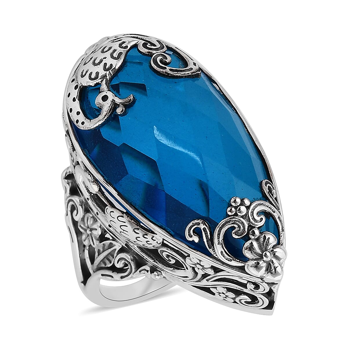Bali Legacy Caribbean Quartz (Triplet) Peacock Ring in Sterling Silver (Size 11.0) 25.90 ctw