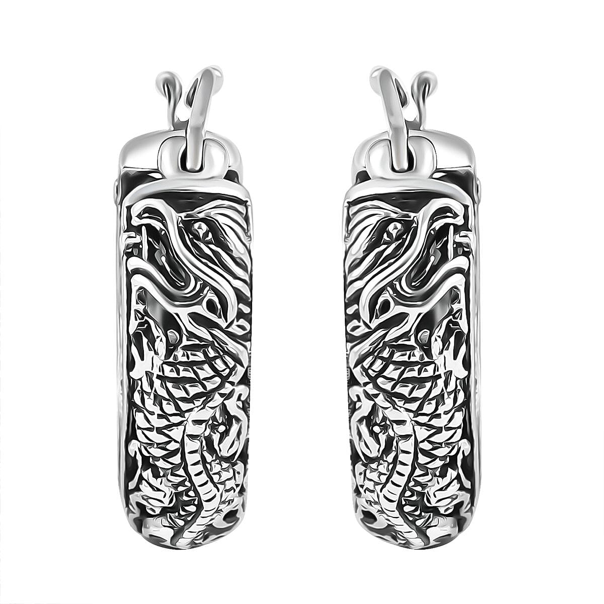 Bali Legacy Dragon Hoop Earrings in Sterling Silver 7.90 Grams