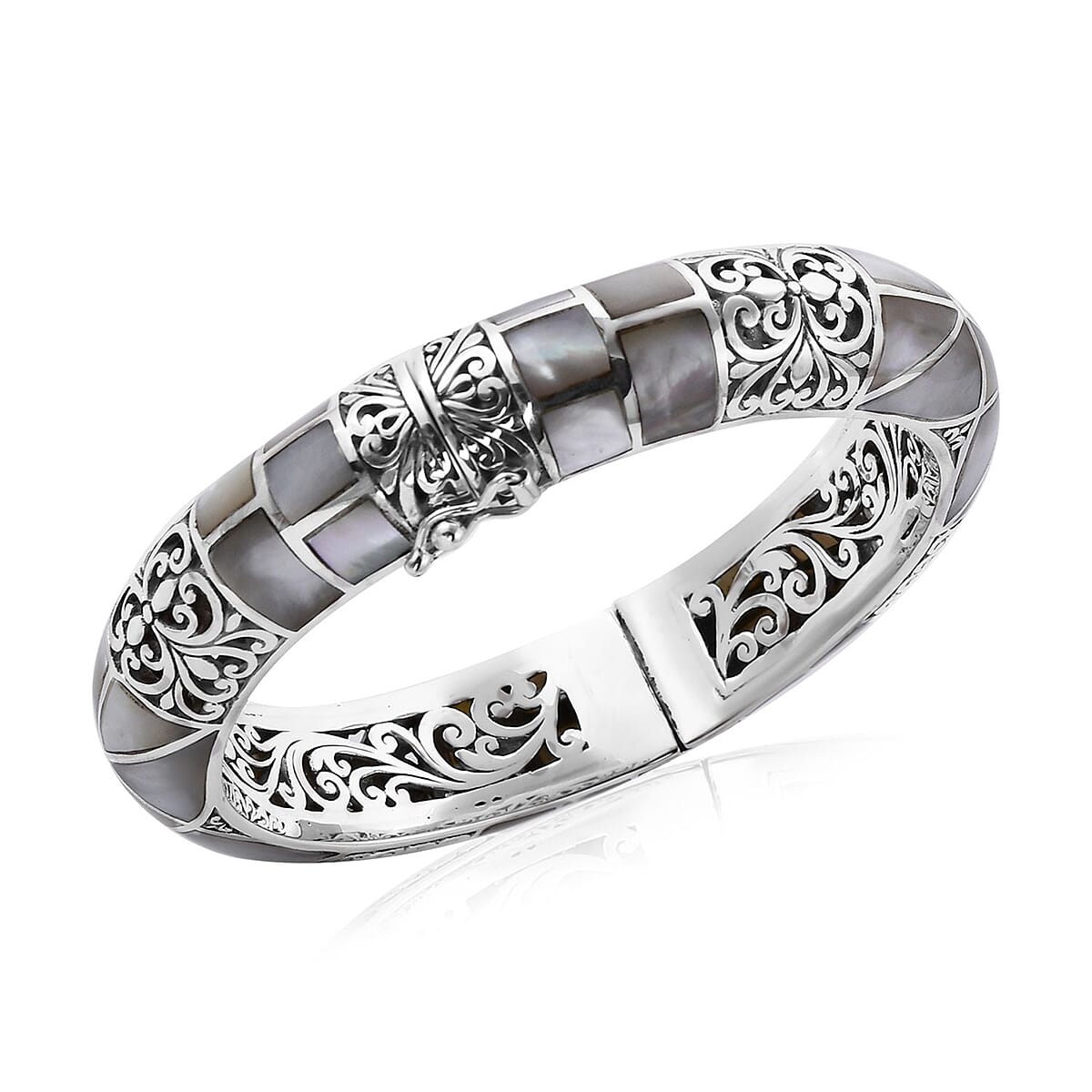 Bali Legacy Mother Of Pearl Bangle Bracelet in Sterling Silver