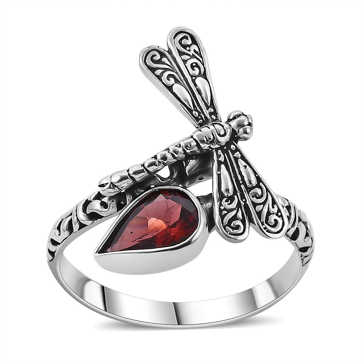 Bali Legacy Mozambique Garnet Dragonfly Bypass Ring in Sterling Silver (Size 5.0) 1.35 ctw