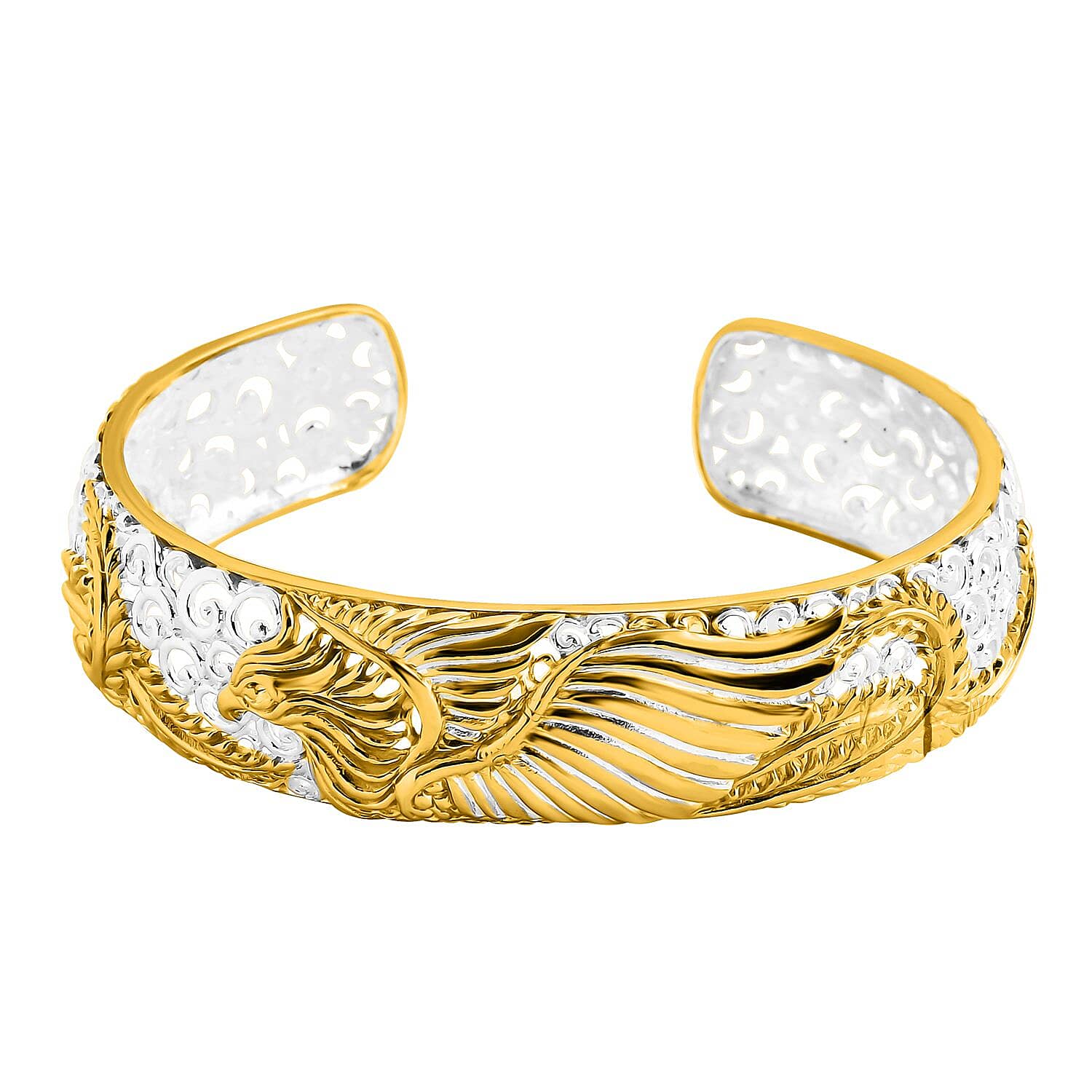 Bali Legacy Phoenix Cuff Bracelet in 22K Vermeil YG Over and Sterling Silver (7.25 In) 30.60 Grams