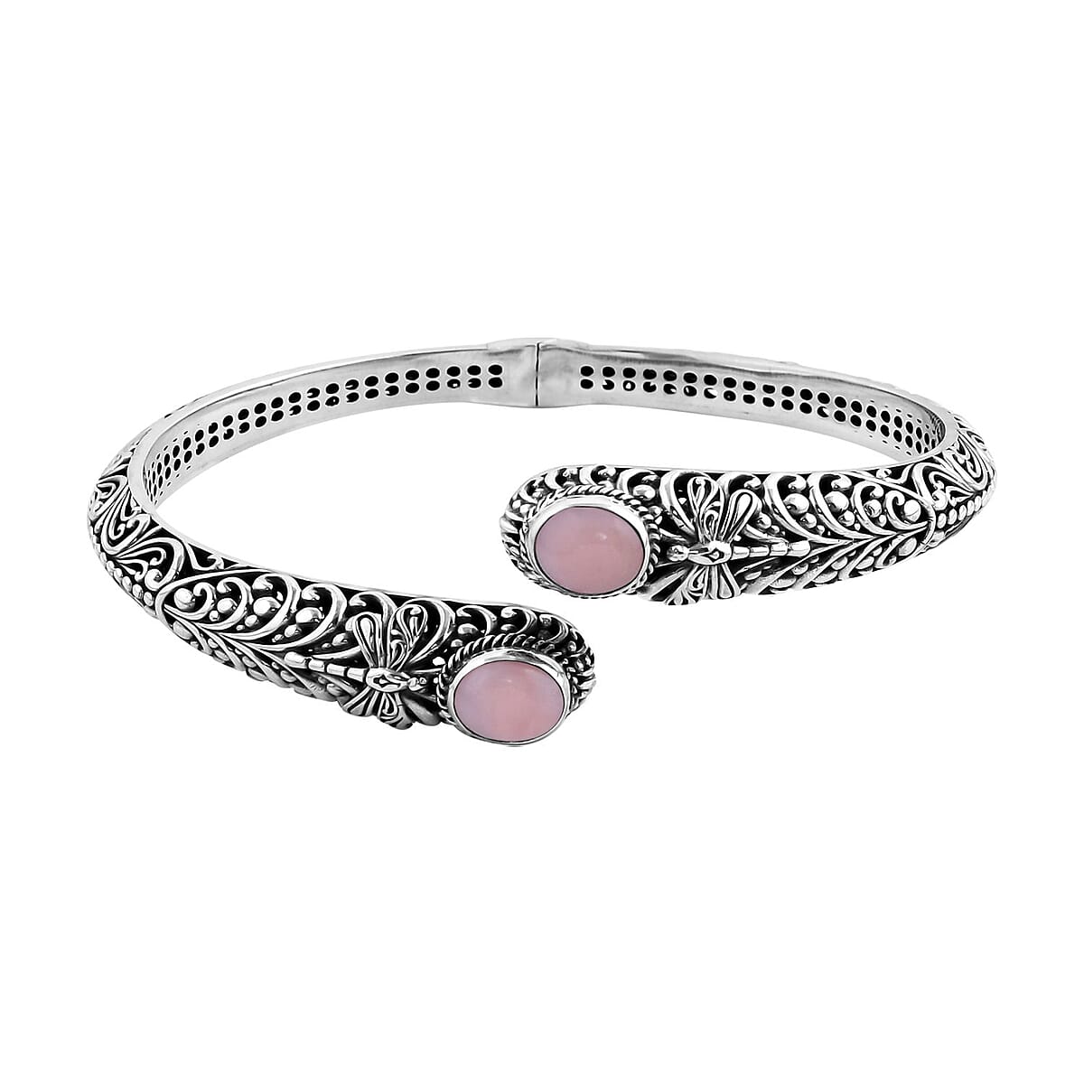 Bali Legacy Premium Peruvian Pink Opal Dragonfly Bypass Bangle Bracelet in Sterling Silver (6.50 In) 4.75 ctw