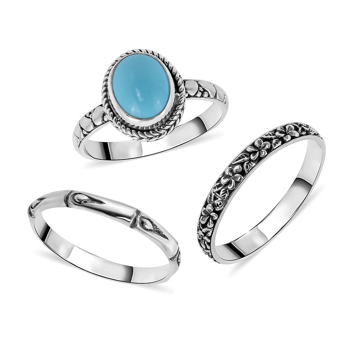 Bali Legacy Sleeping Beauty Turquoise Stackable Ring in Sterling Silver (Size 10.0) 9 Grams 2.35 ctw