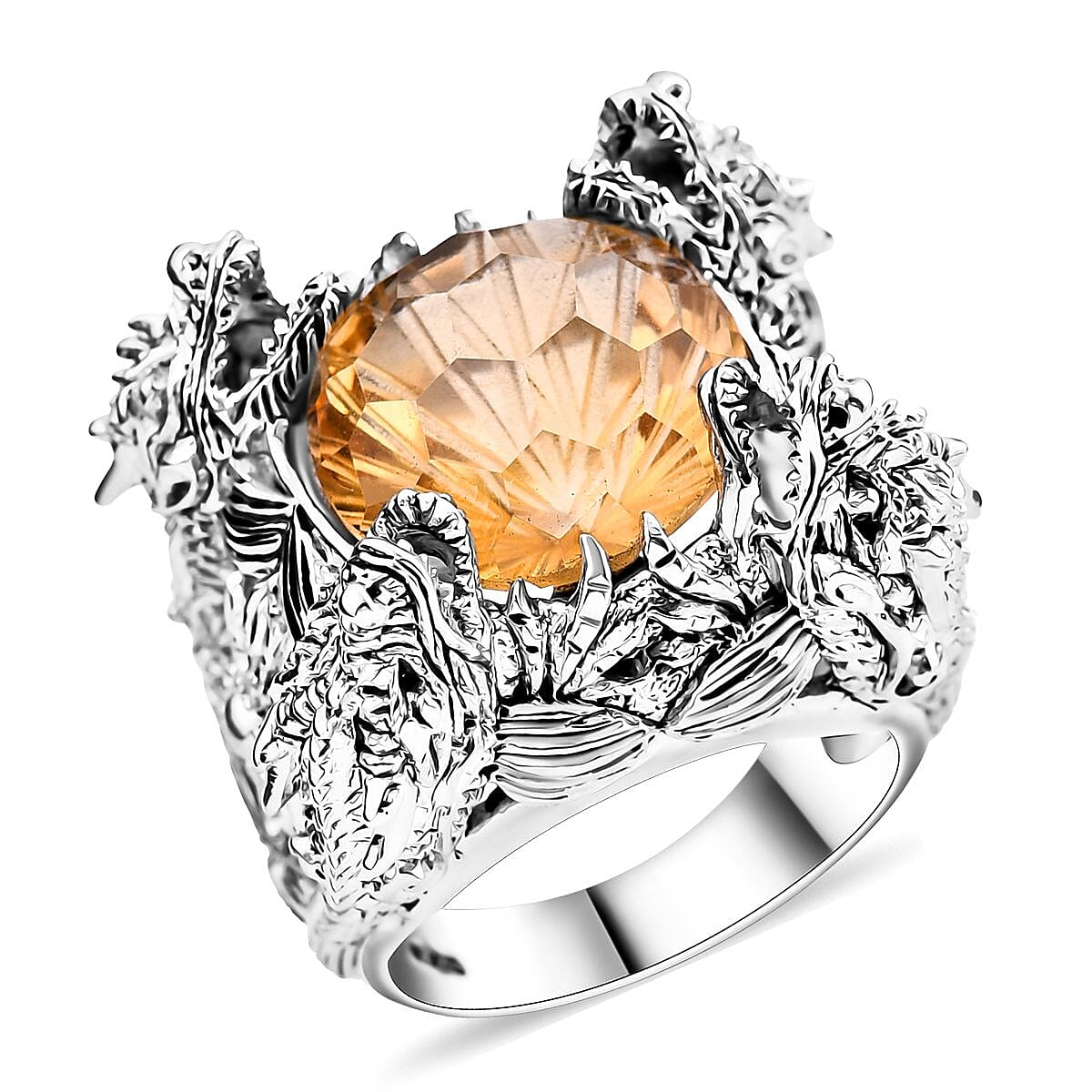 Bali Legacy Starburst Cut Brazilian Citrine 12.25 ctw Dragon Ring in Sterling Silver (Size 6.0)