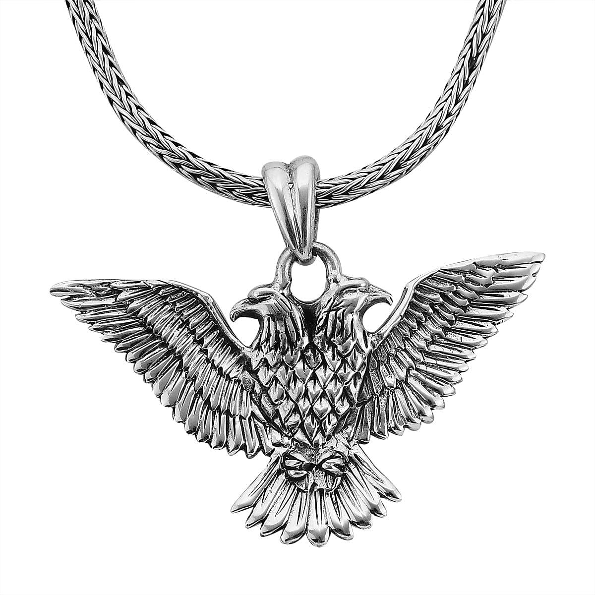Bali Legacy Sterling Silver Double Headed Eagle Pendant with Tulang Naga Chain 18 Inches 25.15 Grams