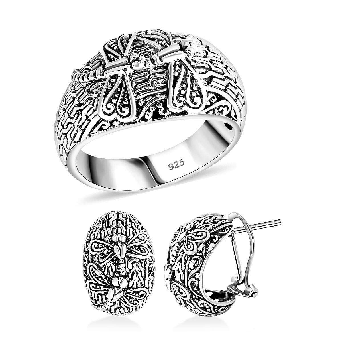 Bali Legacy Sterling Silver Dragonfly Ring (Size 6.0) and Earrings 17.40 Grams