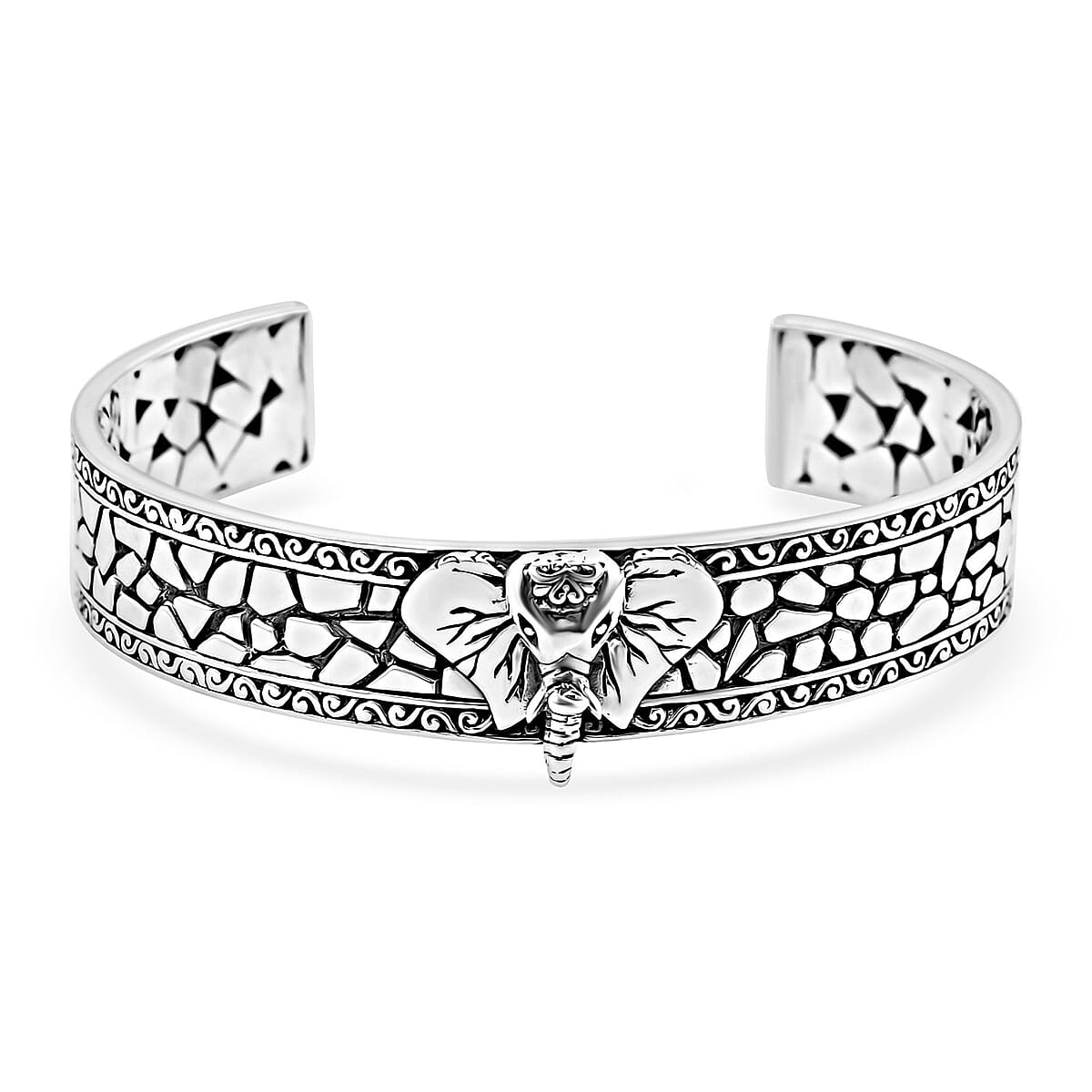 Bali Legacy Sterling Silver Elephant Cuff Bracelet (7.25 In) 38.75 Grams