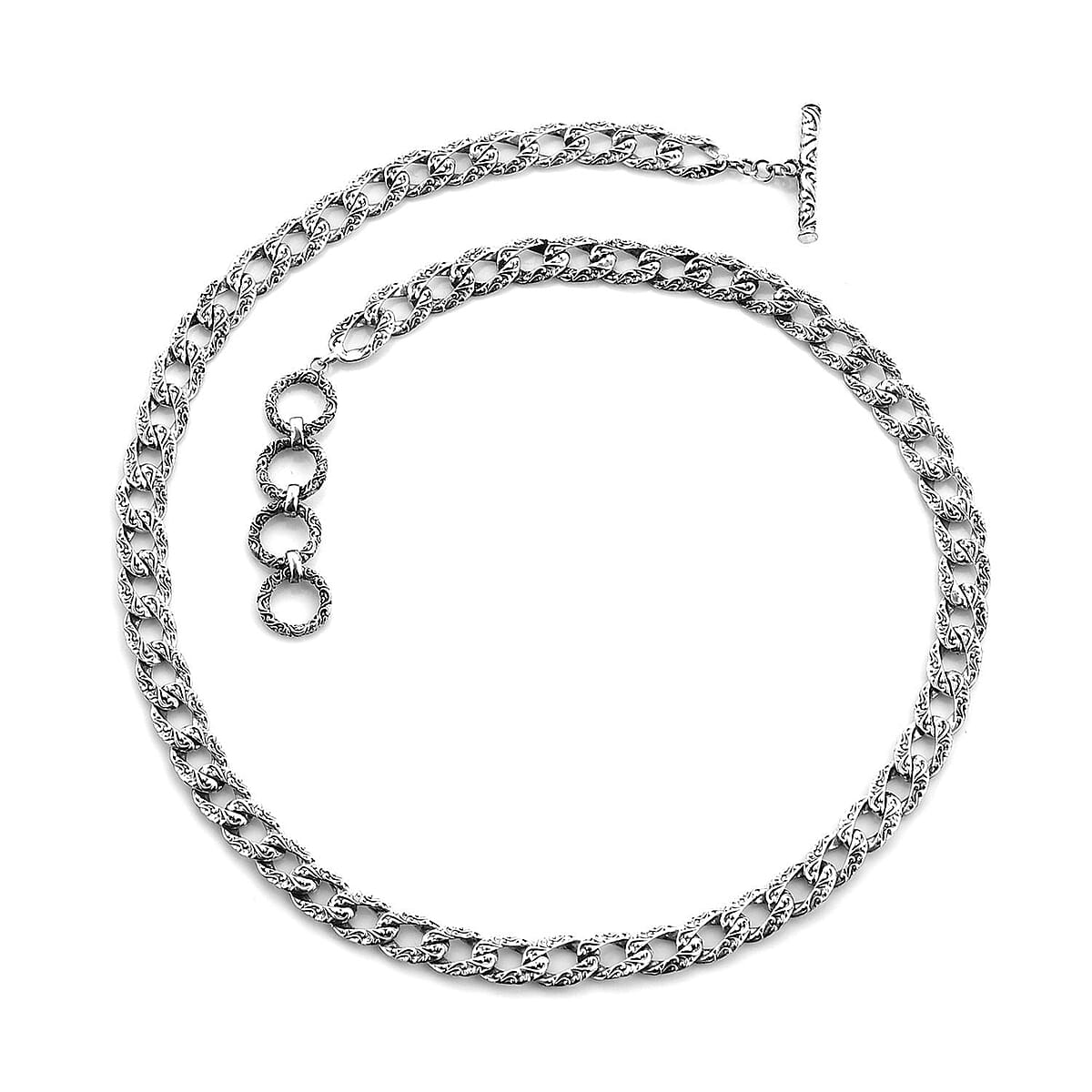 Bali Legacy Sterling Silver Filigree Texture Curb Necklace 18-20 Inches 34 Grams