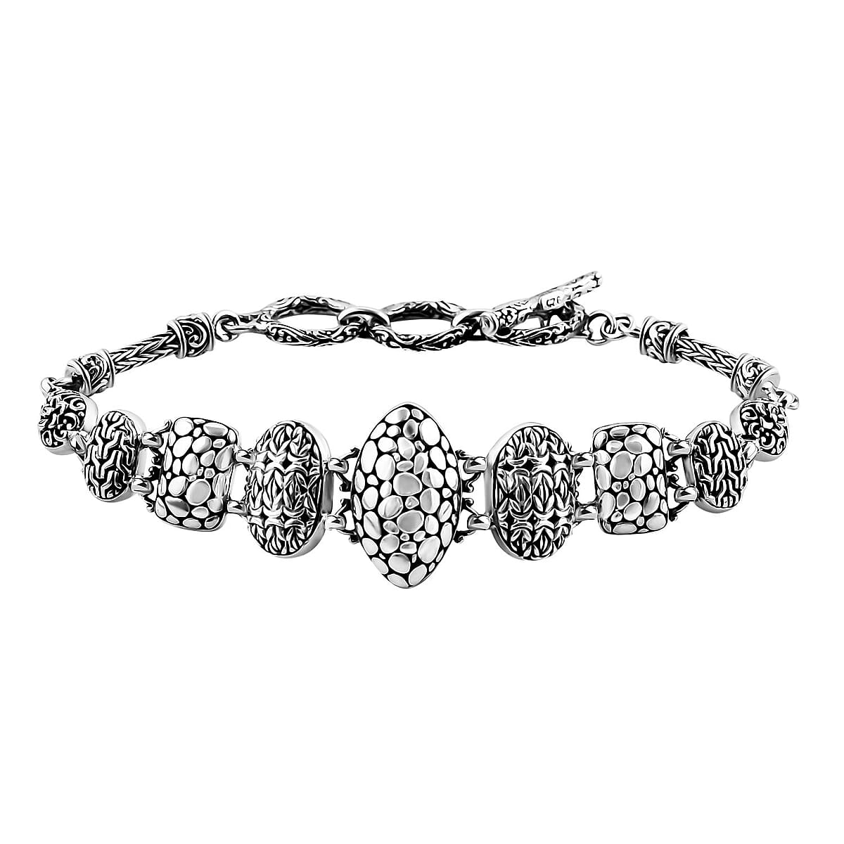 Bali Legacy Sterling Silver Multi Pattern Borobudur, Flower and Tulang Naga Bracelet (6.50-8.25In) 19.80 Grams