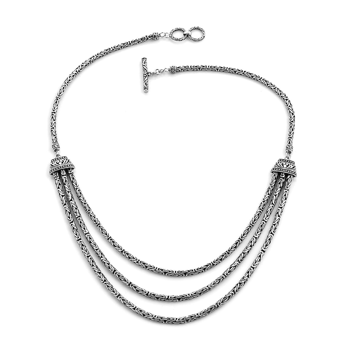 Bali Legacy Sterling Silver Multi Strand Borobudur Toggle Clasp Necklace 20 Inches 57.50 Grams