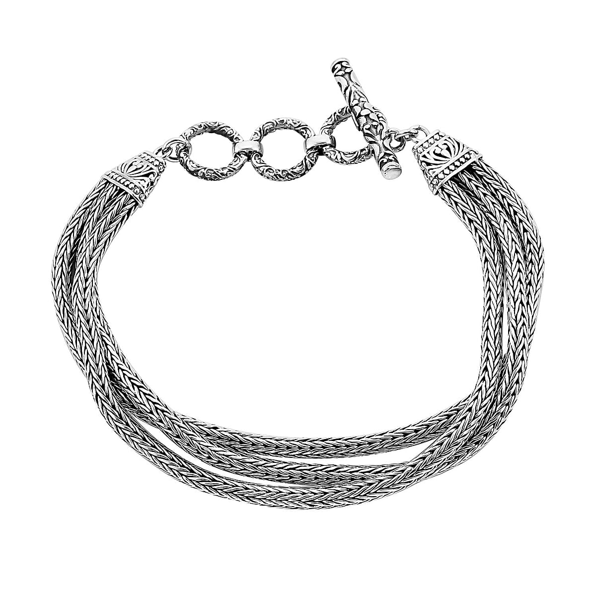 Bali Legacy Sterling Silver Multi Strand Tulang Naga Toggle Clasp Bracelet (7.25 In) (25.40 g)
