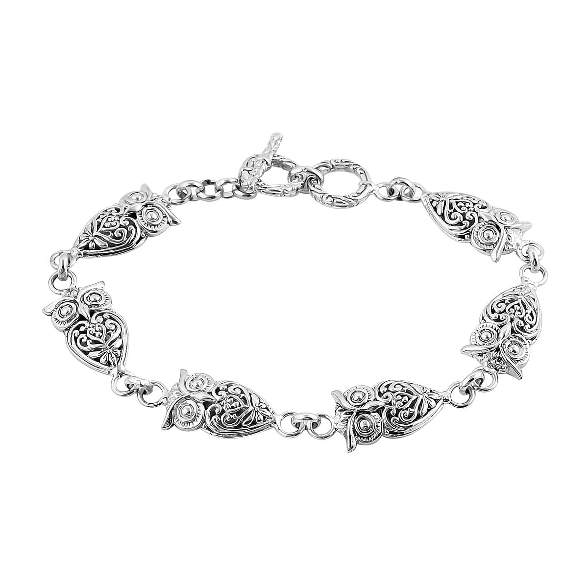 Bali Legacy Sterling Silver Owl Link Bracelet (7.25 In) 15.70 Grams