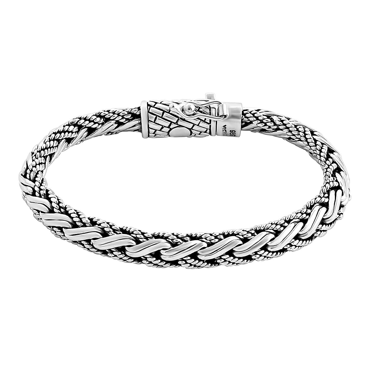 This Bali legacy bracelet is a testament to timeless craftsmanship and elegance. Featuring an intricate link design, this Padian bracelet showcases the skilled artistry of Bali's traditional jewelry-making techniques. Crafted in sterling silver and secured with a reliable tab-inserted clasp, this silver jewelry is perfect for adding a touch of sophistication to any ensemble.