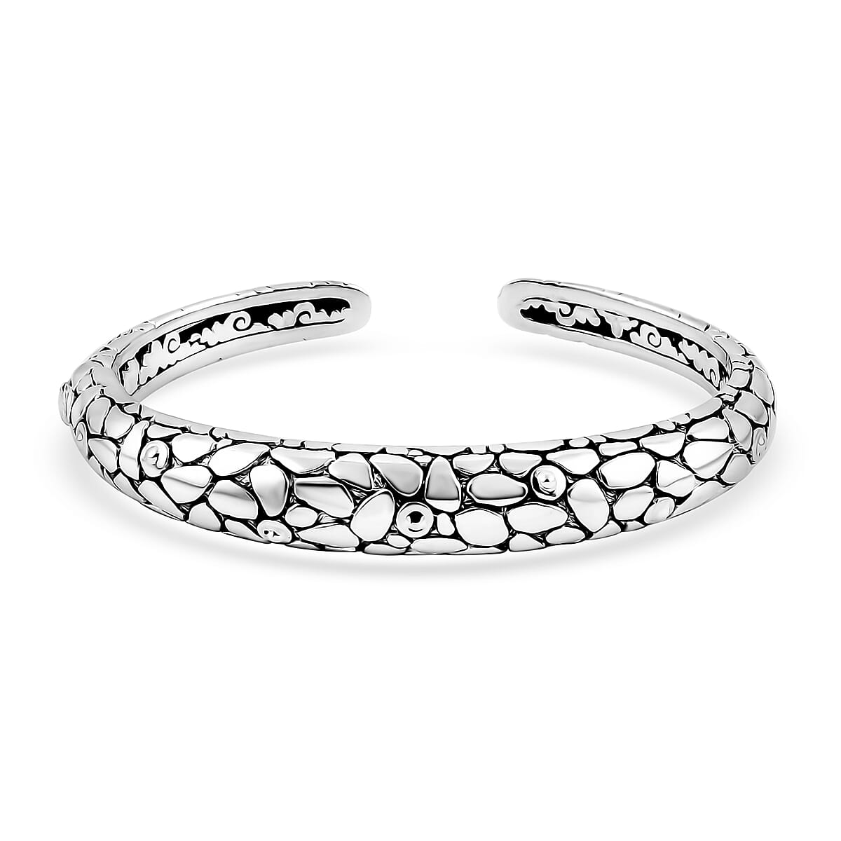 Add sophistication to your wrist with this Bali Legacy pebble texture cuff bracelet in 925 sterling silver. This elegant sterling silver bracelet for women features a textured design for uniqueness. Perfect for both casual and formal occasions.