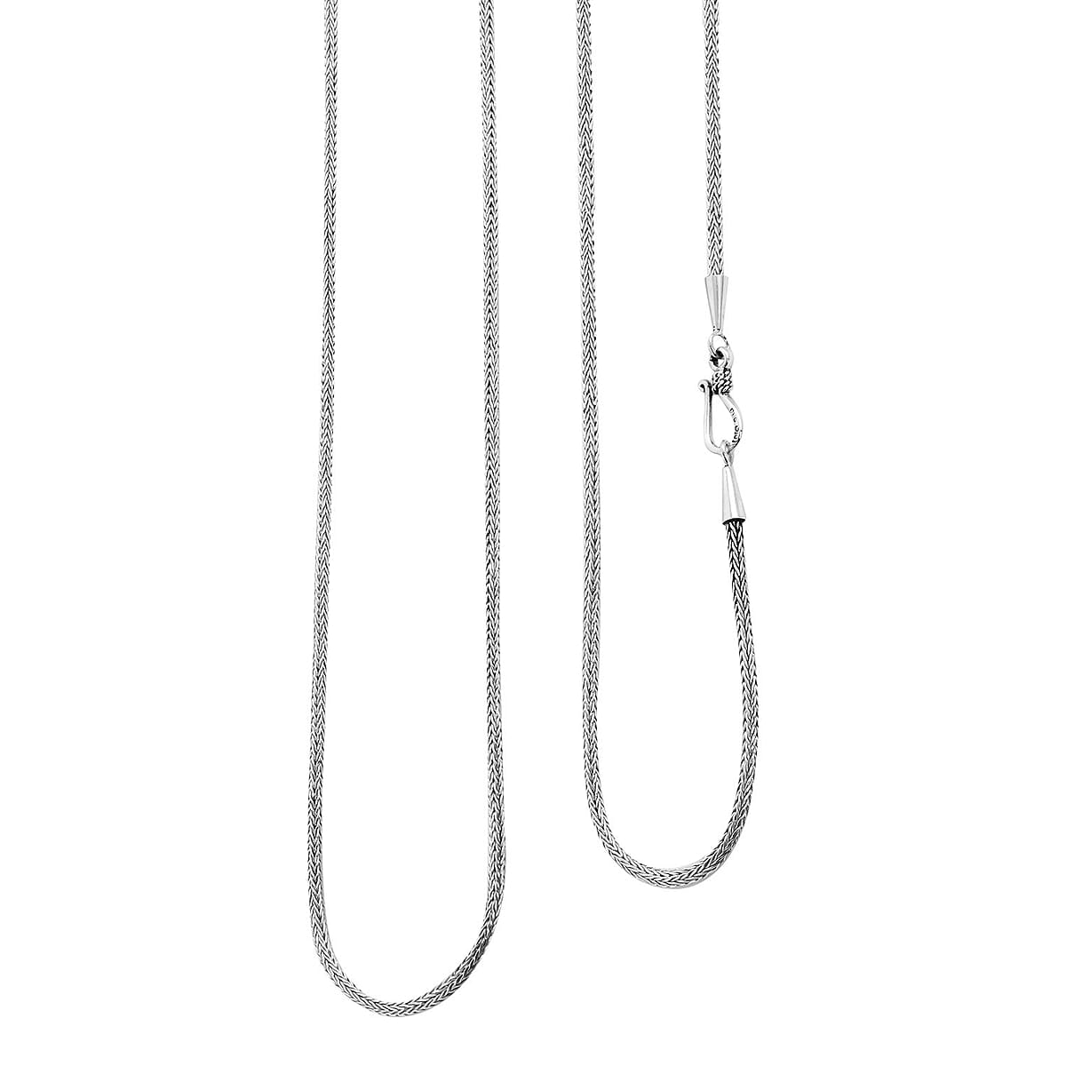The awe-inspiring sterling silver Tulang Naga chain necklace is perfect for flaunting the artisan's skilled work. This necklace features a braided pattern of multiple Tulang Naga chain strands. Tulang Naga is a traditional Indonesian weaving pattern passed down through ancient times. This sterling silver necklace represents traditional artistry from generations of artisans in Bali. Crafted in sterling silver gives it a metallic sheen luster that glitters all over your neckline.