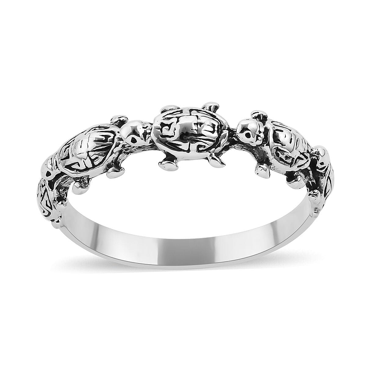 Unleash your playful side with the Bali Legacy turtle ring. Dive into a world of whimsical charm with this delightful ring adorned with a line of turtle motifs. Crafted in sterling silver, this Bali Legacy ring captures the essence of nature and showcases exquisite craftsmanship. Embrace the joy and adventure that this unique piece brings to your everyday style.