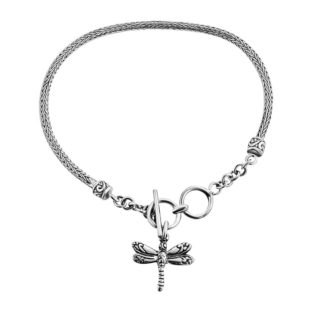 Bali Legacy Tulang Naga Bracelet , Sterling Silver Bracelet , Dragonfly Charm Bracelet (6.50-8.0In) 8.20 Grams