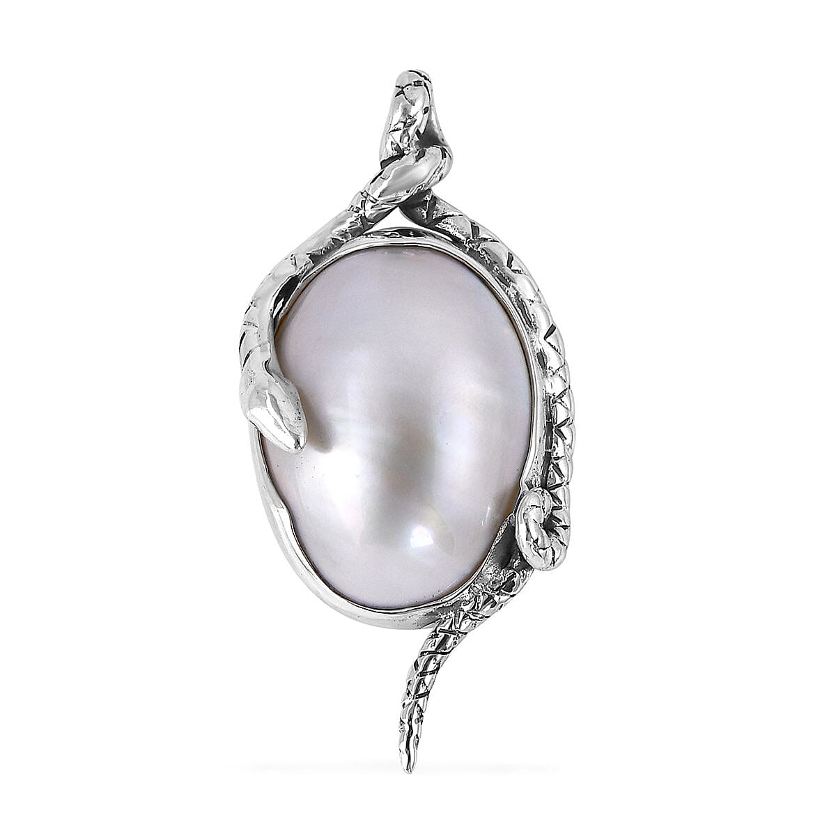 • BEAUTY OF DESIGN: This sterling silver pendant features a unique snake frame with mabe pearl solitaire in the center
