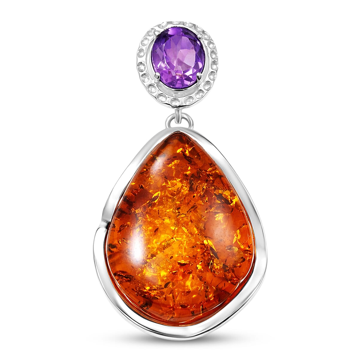 Baltic Amber, Amethyst 8.00 ctw Wrap Pendant without Chain Sterling Silver