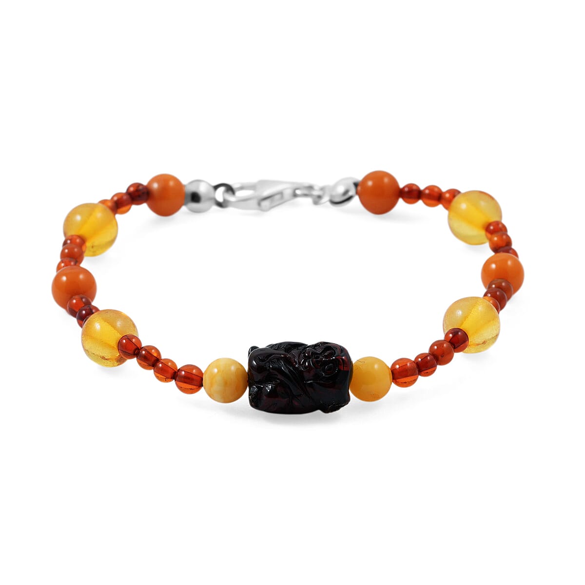 Baltic Amber Beaded Monkey Bracelet in Sterling Silver (7.0 In)