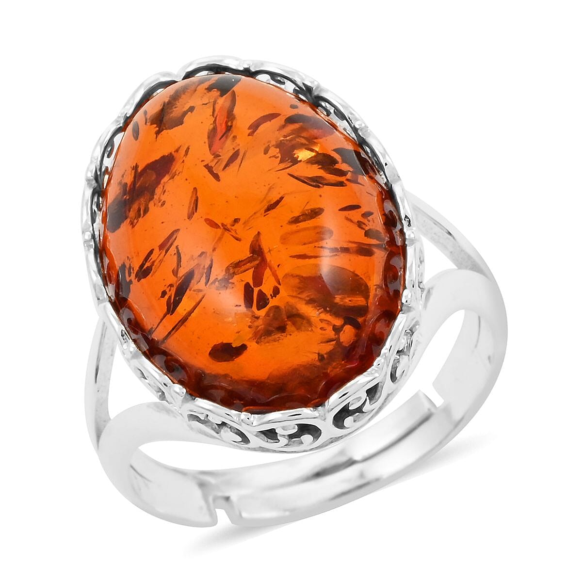 Baltic Amber Solitaire Ring in Sterling Silver (Size 7.0)