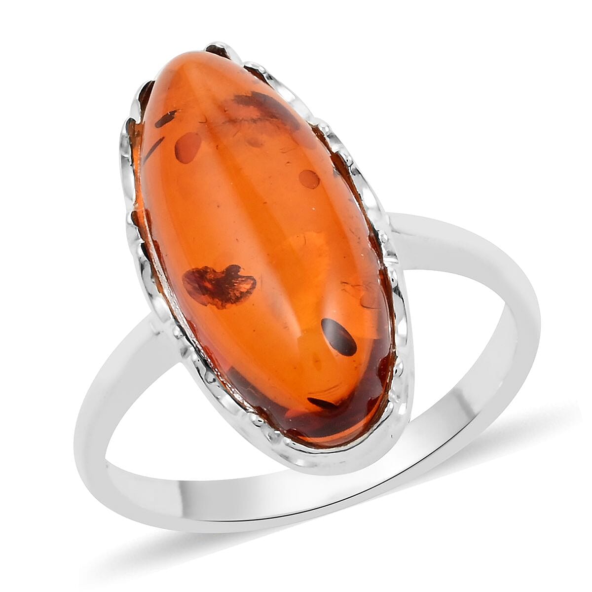 Baltic Amber Solitaire Ring in Sterling Silver (Size 8.0)