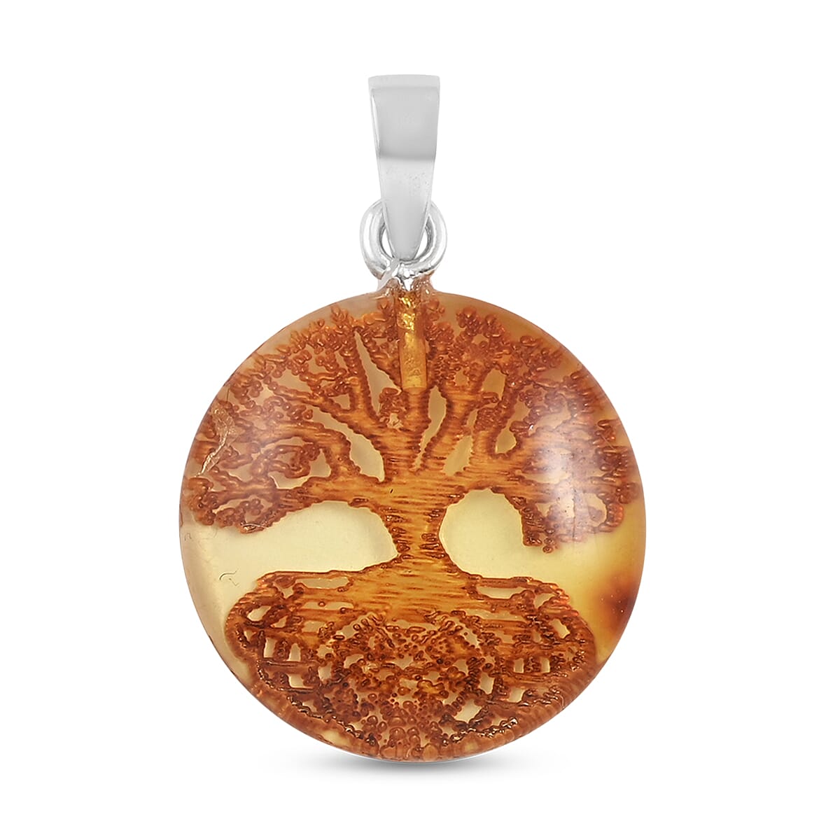 Baltic Amber Tree of Life Round Pendant in Sterling Silver