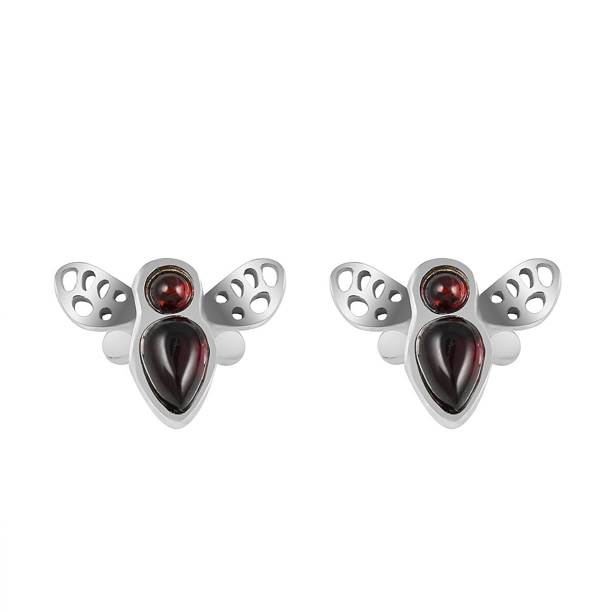 Baltic Cherry Colored Amber Insect Stud Earrings in Sterling Silver