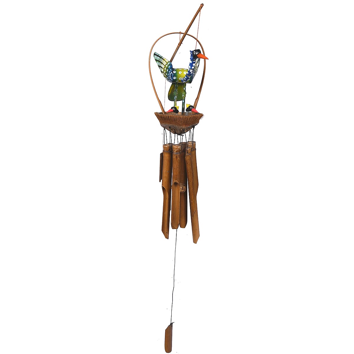 Bamboo Wind Chimes With Stork Feeding on Nest