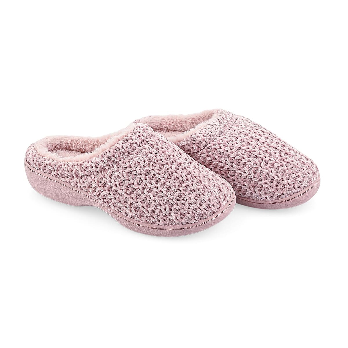 BANDOLINO Mauve Fur Lined Chenille House Slippers in Gifting Box - XL