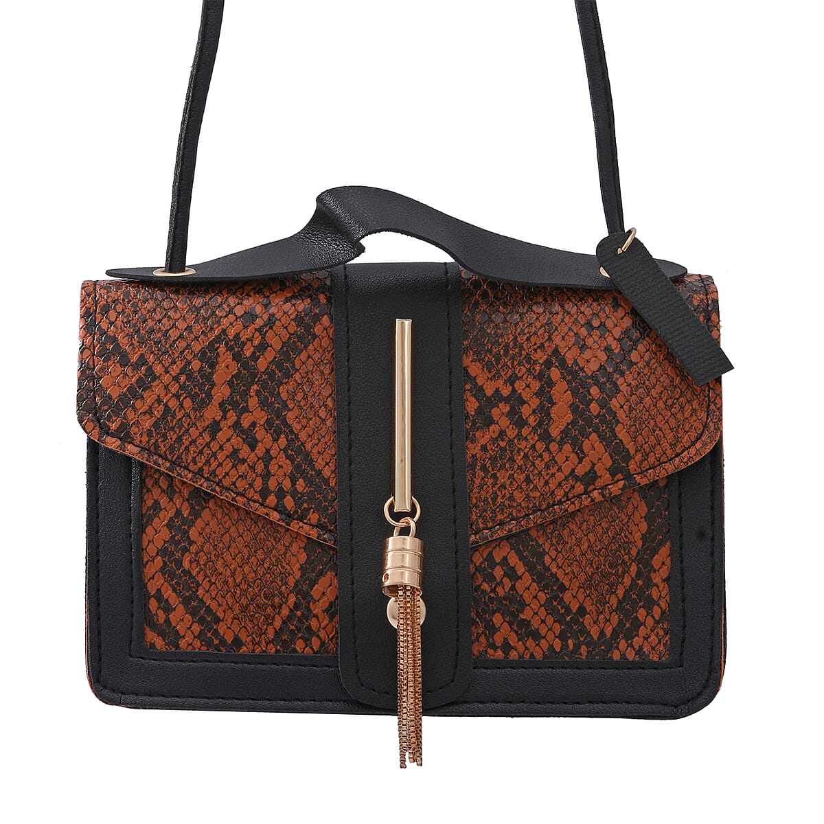 Bangkok Closeout Royal Siamese Brown Python Embossed Faux Leather Mini Handbag with Handle Drop and Shoulder Strap