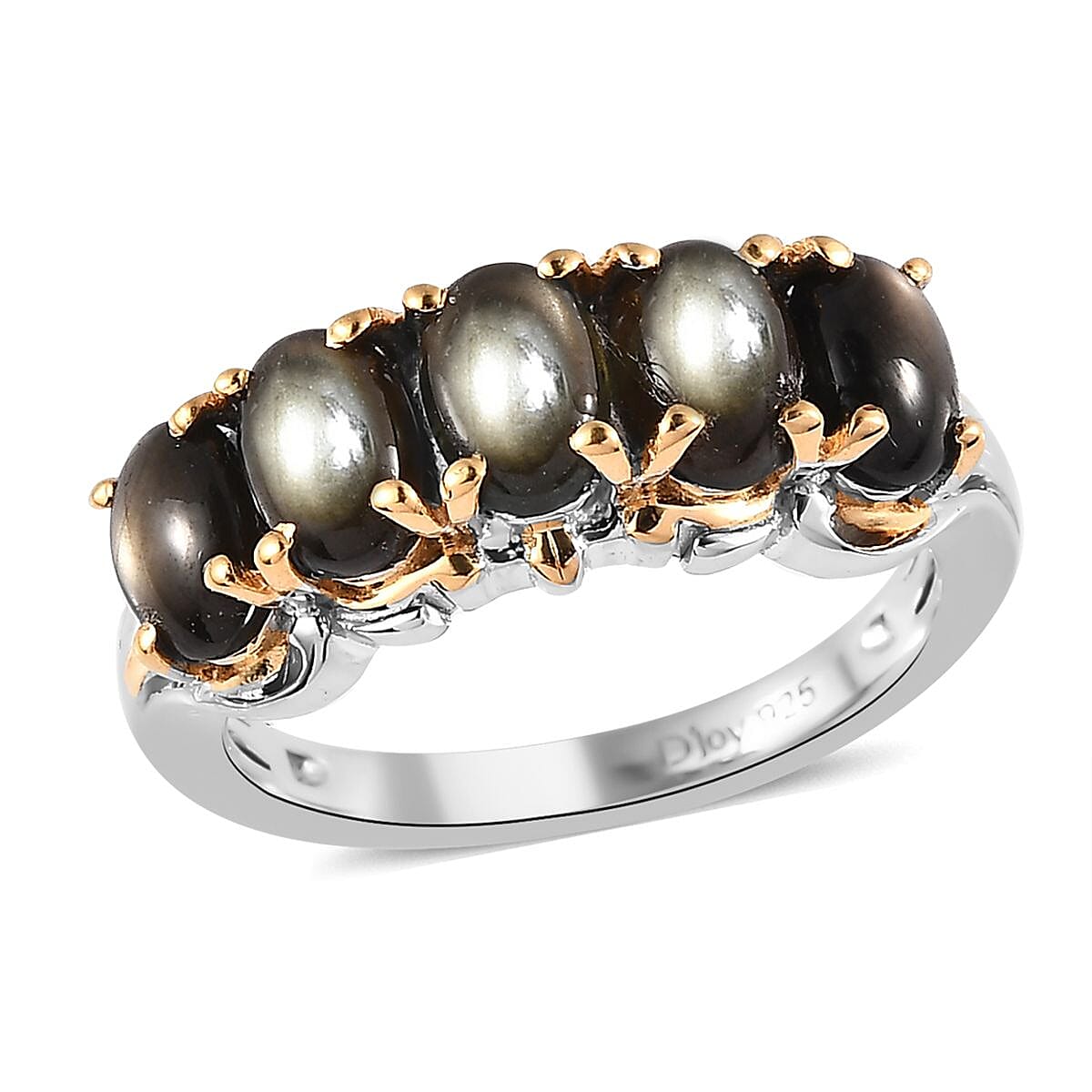 Bankacha Natural Black Star Sapphire 5 Stone Ring in Vermeil YG and Platinum Over Sterling Silver (Size 6.0) 3.15 ctw
