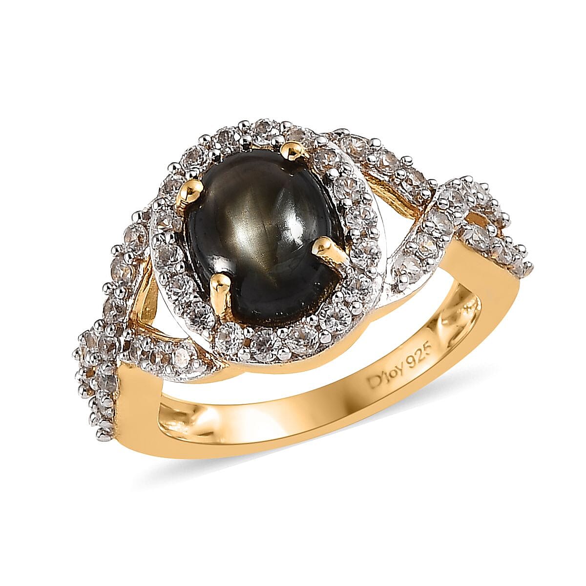 Bankacha Natural Black Star Sapphire and White Zircon Infinity Ring in Vermeil Yellow Gold Over Sterling Silver 3.75 ctw