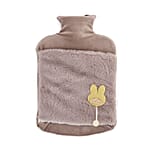 Beige 2L Hot Water Bag with Rabbit Faux Fur Cover