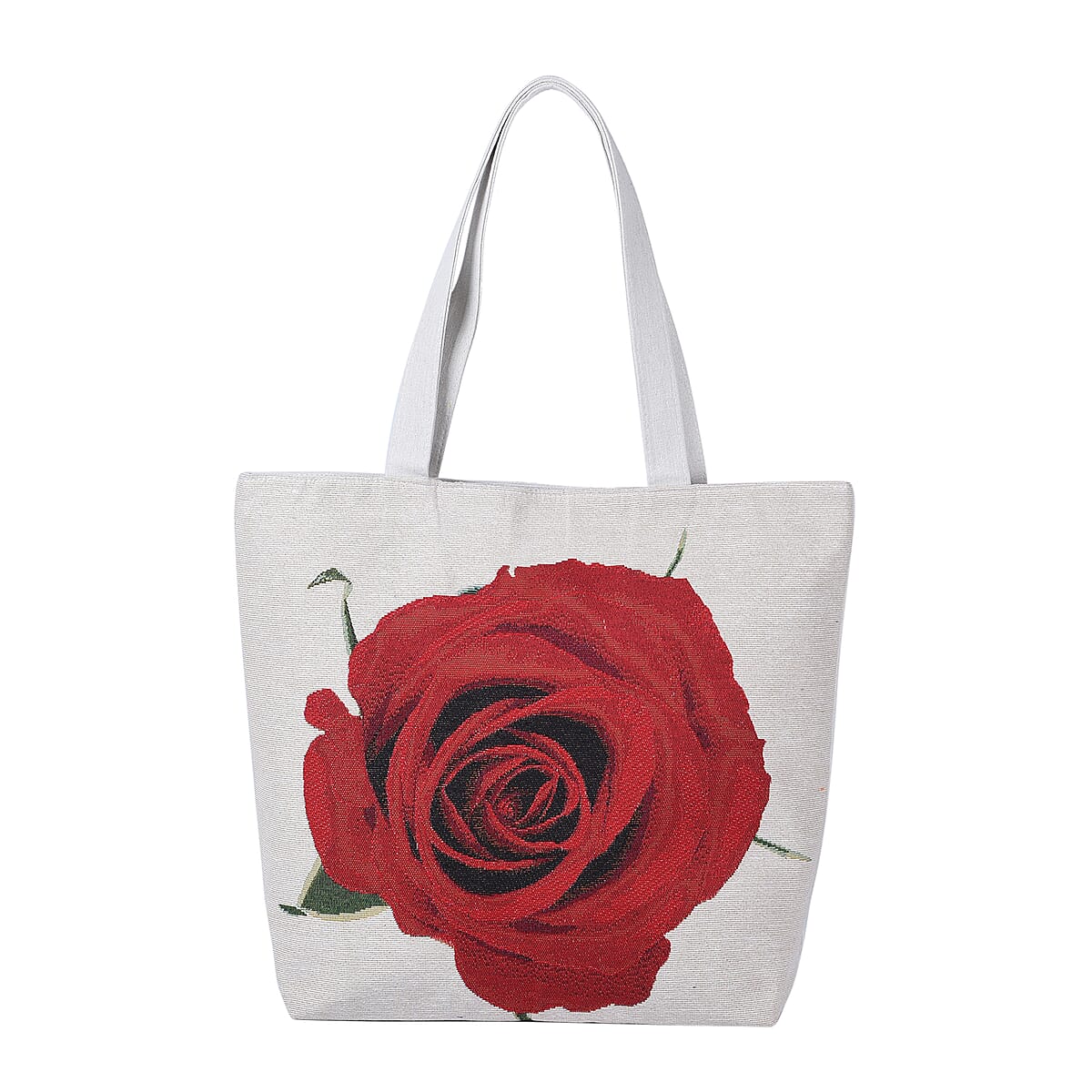 Beige Rose Jacquard Pattern Tote Bag | Women's Jute Tote Bag | Women's Work Tote Hand Bag | Ladies Purse