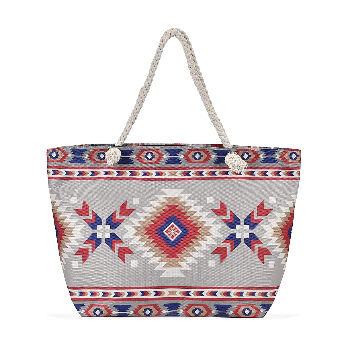 Beige Santa Fe Printed Tote Bag with Handle Drop