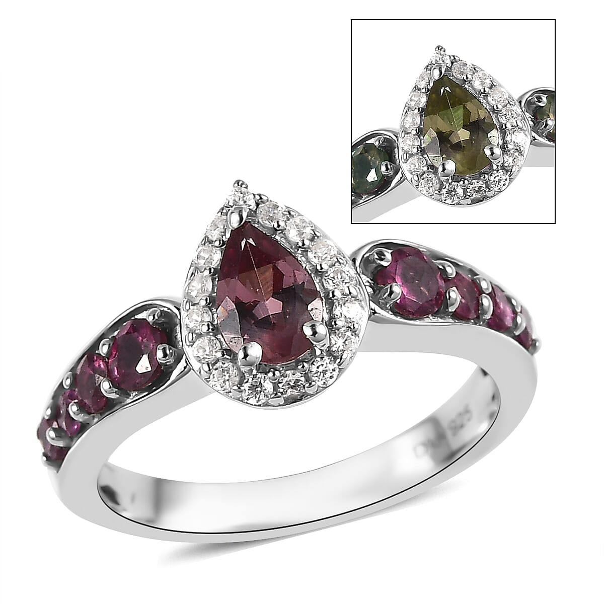 Bekily Color Change Garnet and Multi Gemstone Halo Ring in Platinum Over Sterling Silver 1.25 ctw