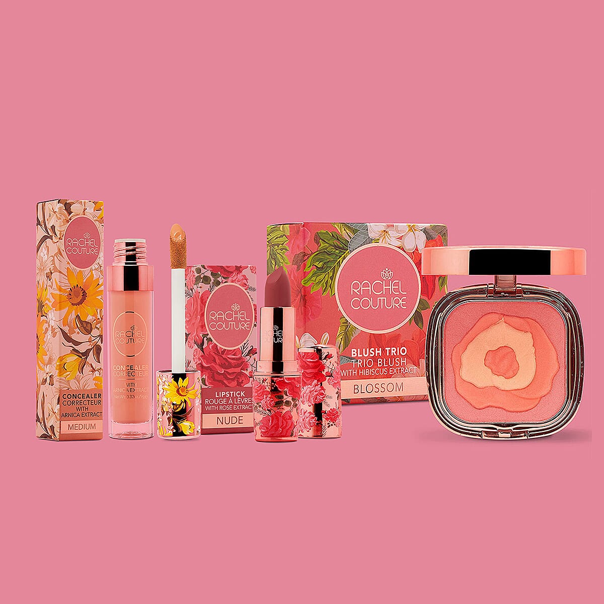Discover the ultimate beauty experience with makeup essentials set light. This carefully curated set includes a concealer, lipstick, and blush kit, all in a light color palette makeup perfect for enhancing your natural beauty. Each product is expertly formulated with skin-loving ingredients like Arnica, Hibiscus, and Rose Extract, ensuring not only a flawless finish but also skin health benefits. The set is 100% vegan beauty products, free from harmful chemicals and fragrances, and suitable for all skin types compatibility. Whether you're aiming for a subtle day look or an evening glow, this cruelty-free cosmetic set is your go-to for a radiant and healthy complexion.