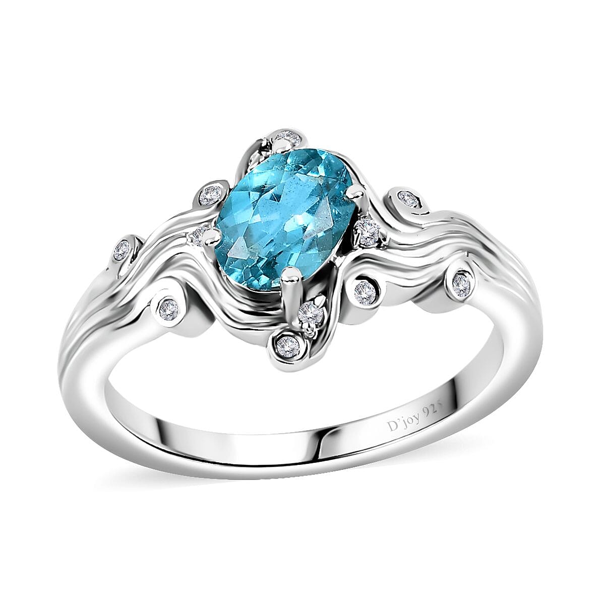 Betroka Blue Apatite, White Zircon Ocean Wave Ring in Rhodium Over Sterling Silver (Size 5.0) 0.90 ctw