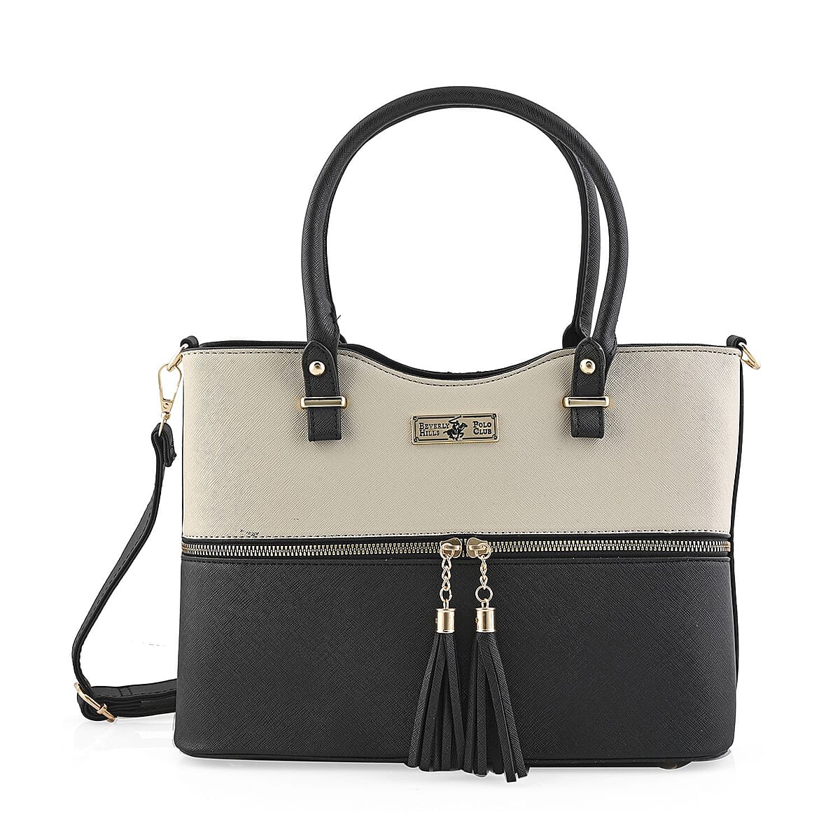 Beverly Hills Polo Club Black & Ivory Faux Leather 2-Tone Shoulder Bag