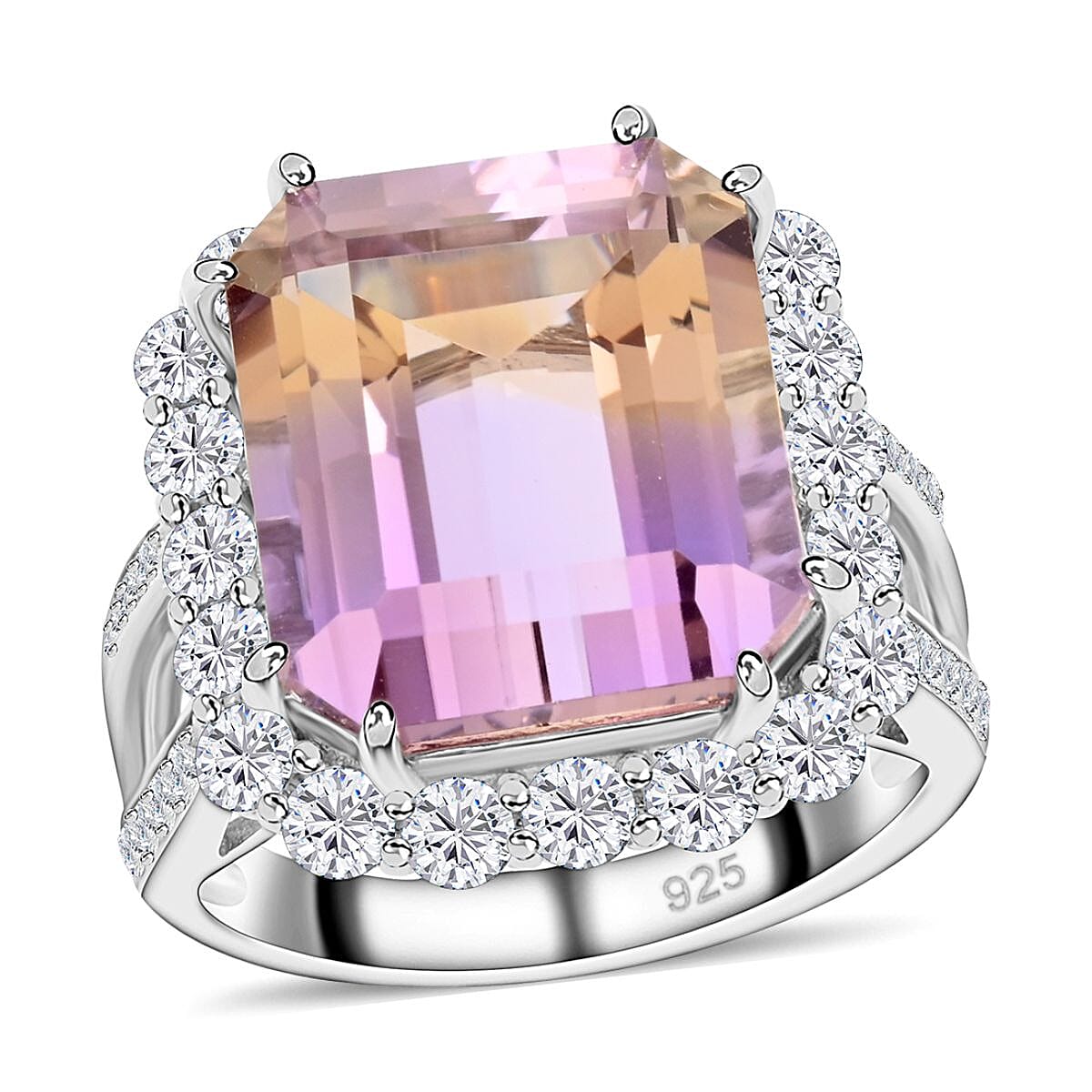 Bi-Color Ametrine and Moissanite Ring in Sterling Silver (Size 8.0) 11.85 ctw