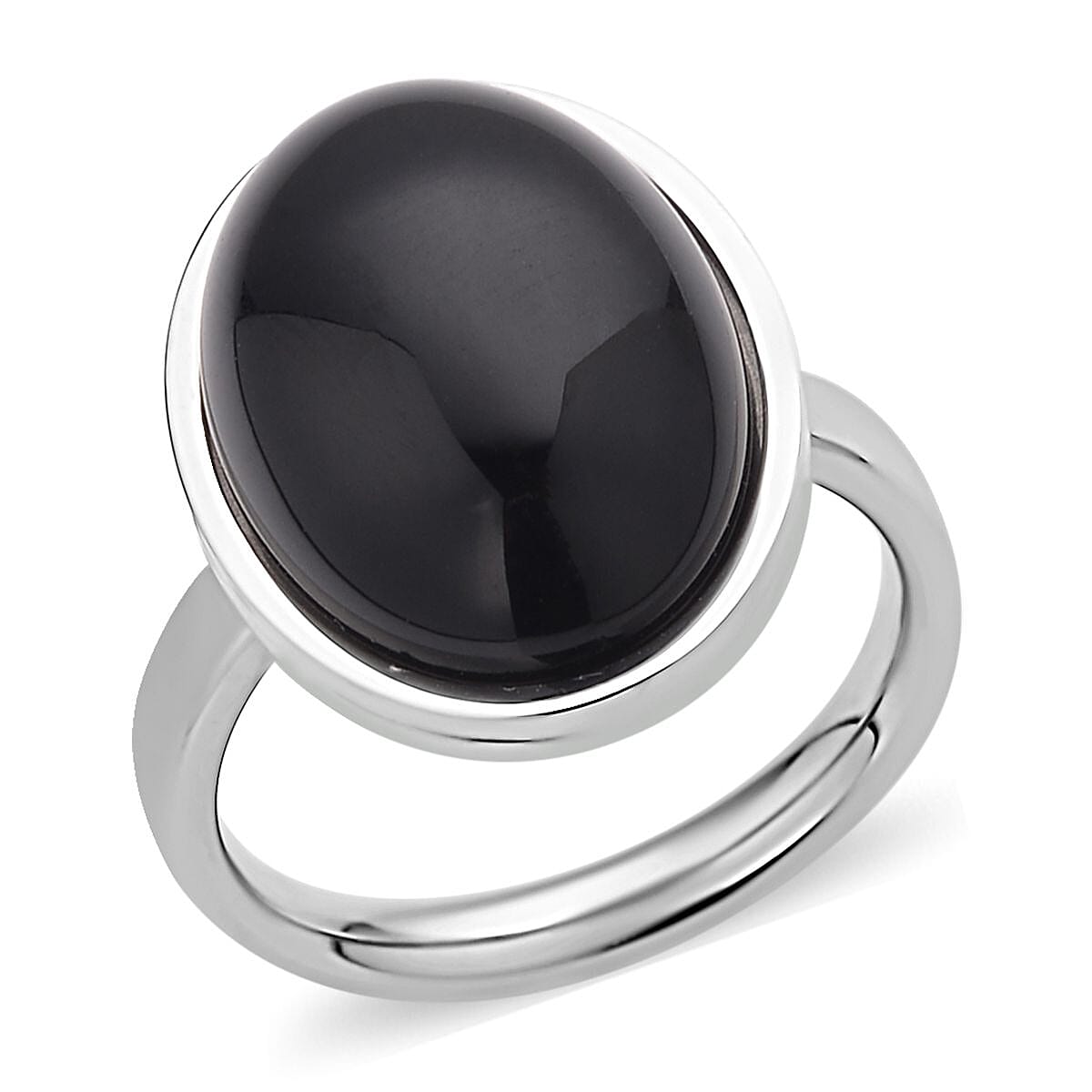 Black Agate Ring in Stainless Steel (Size 8.0) 10.00 ctw
