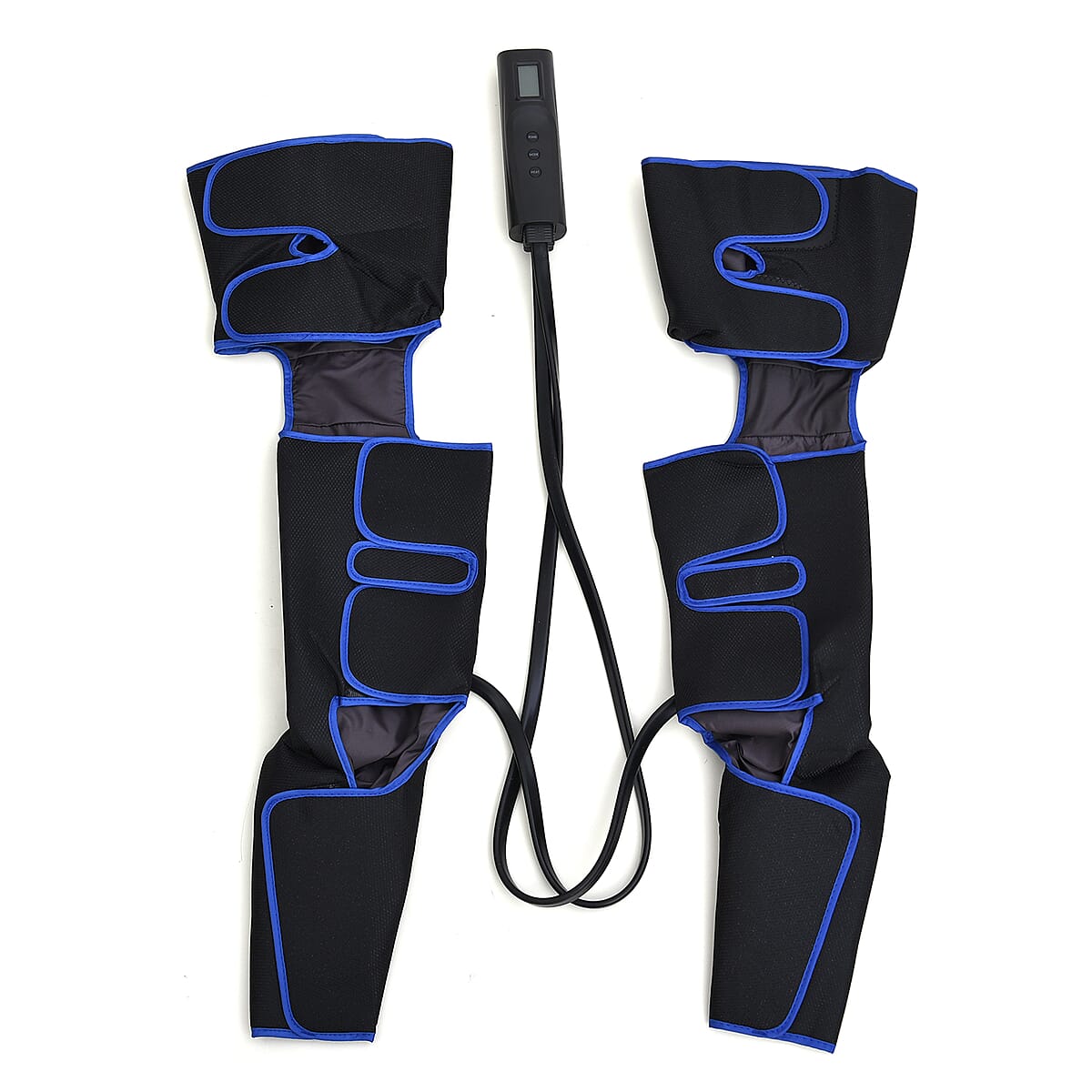 Black Air Compression Foot, Calf and Thigh Massager with Hand-held Controller 3 Modes, 3 Intensities (12V, 2A)
